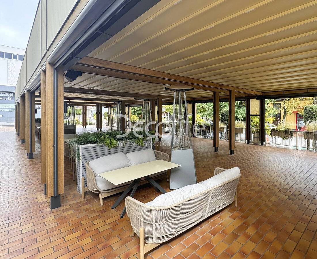 Пергола Decolife Basic&Pro New + Вертикальная система Zip 130 - г. Москва, ресторан "Paulaner Wirtshaus"