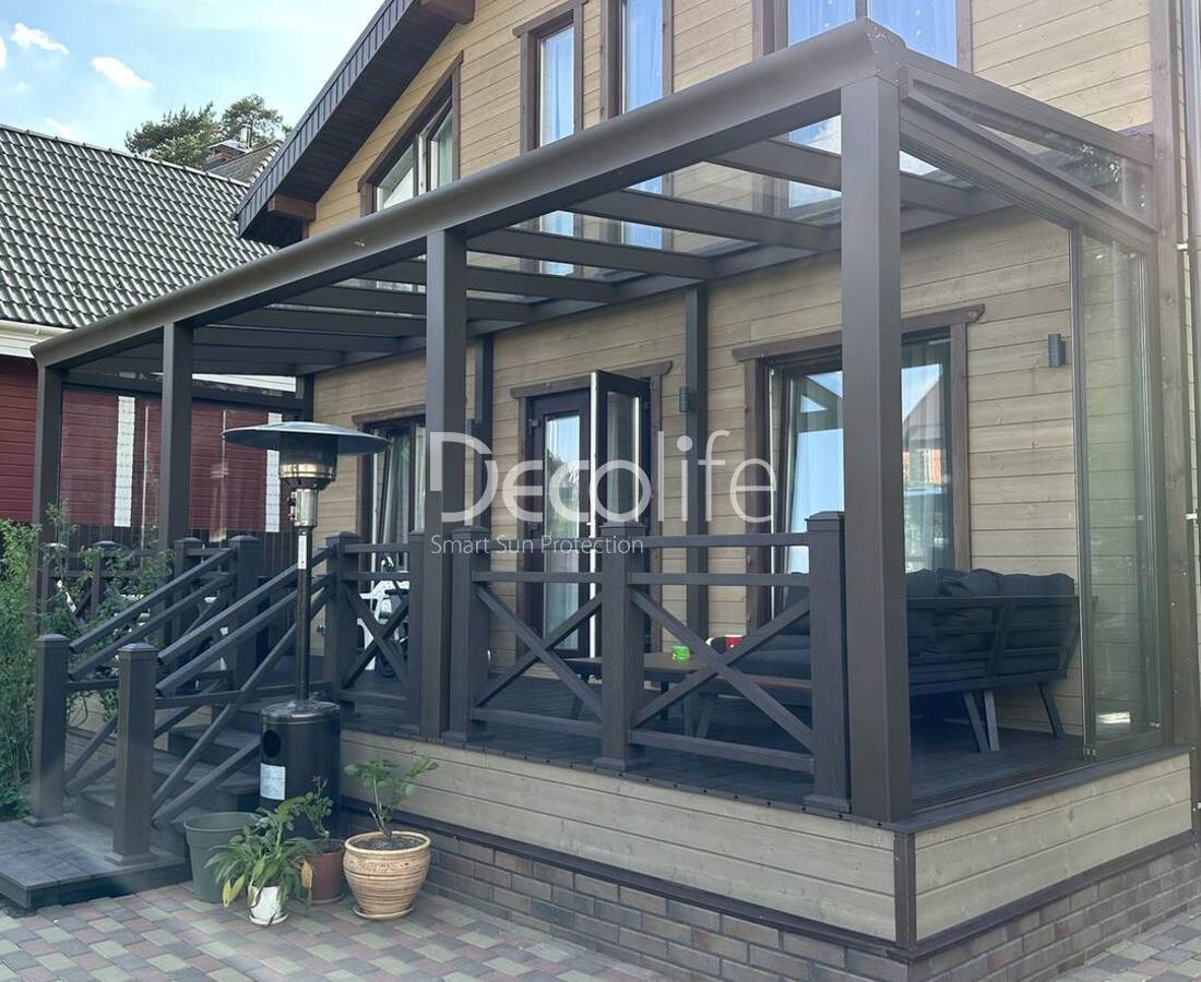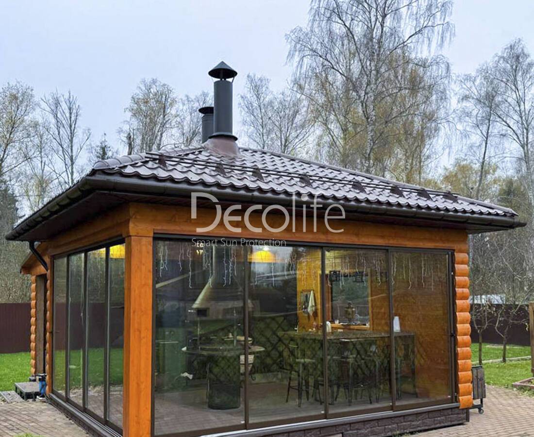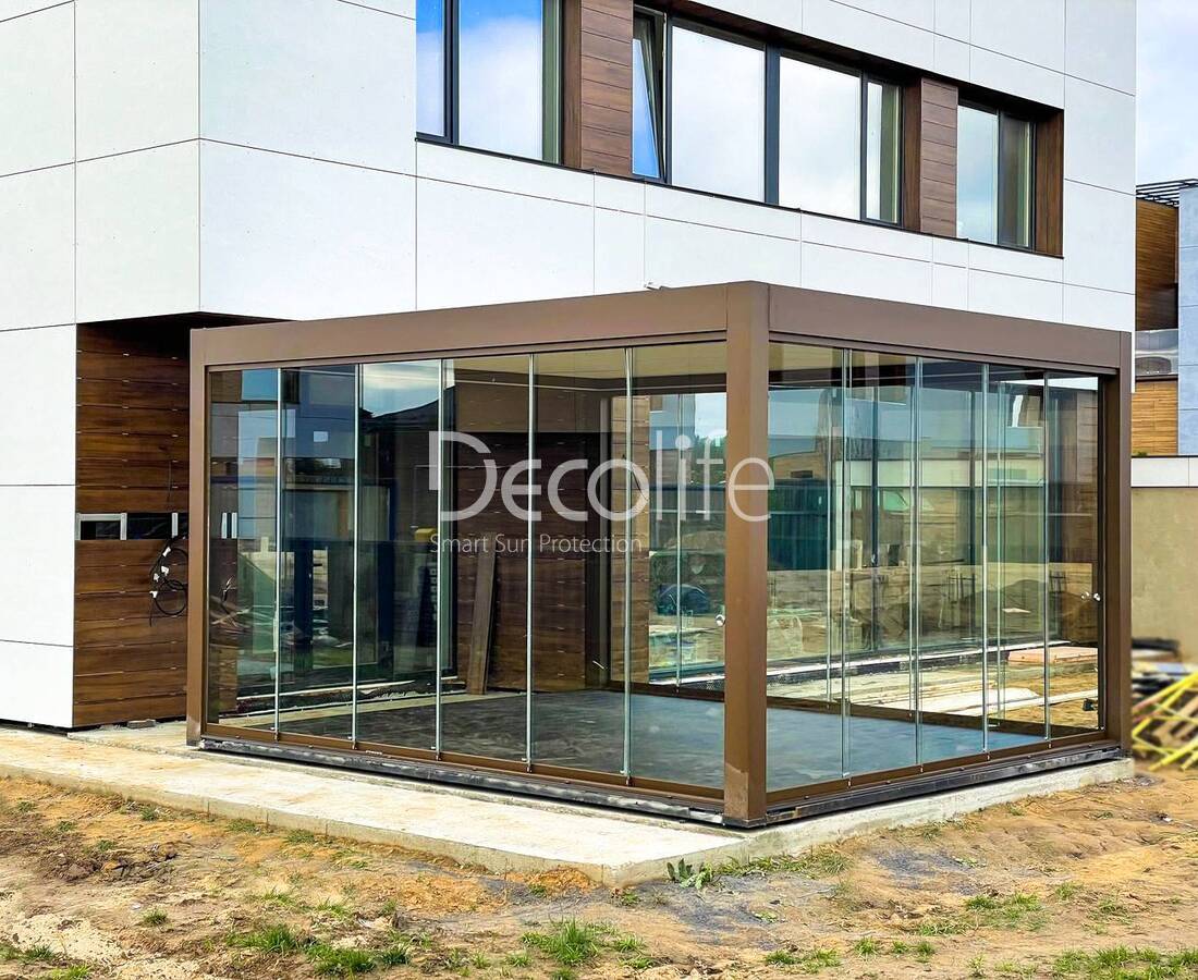Пергола Decolife B600 PIR + Гильотинное W500 и раздвижное S500 остекление - Московская обл.