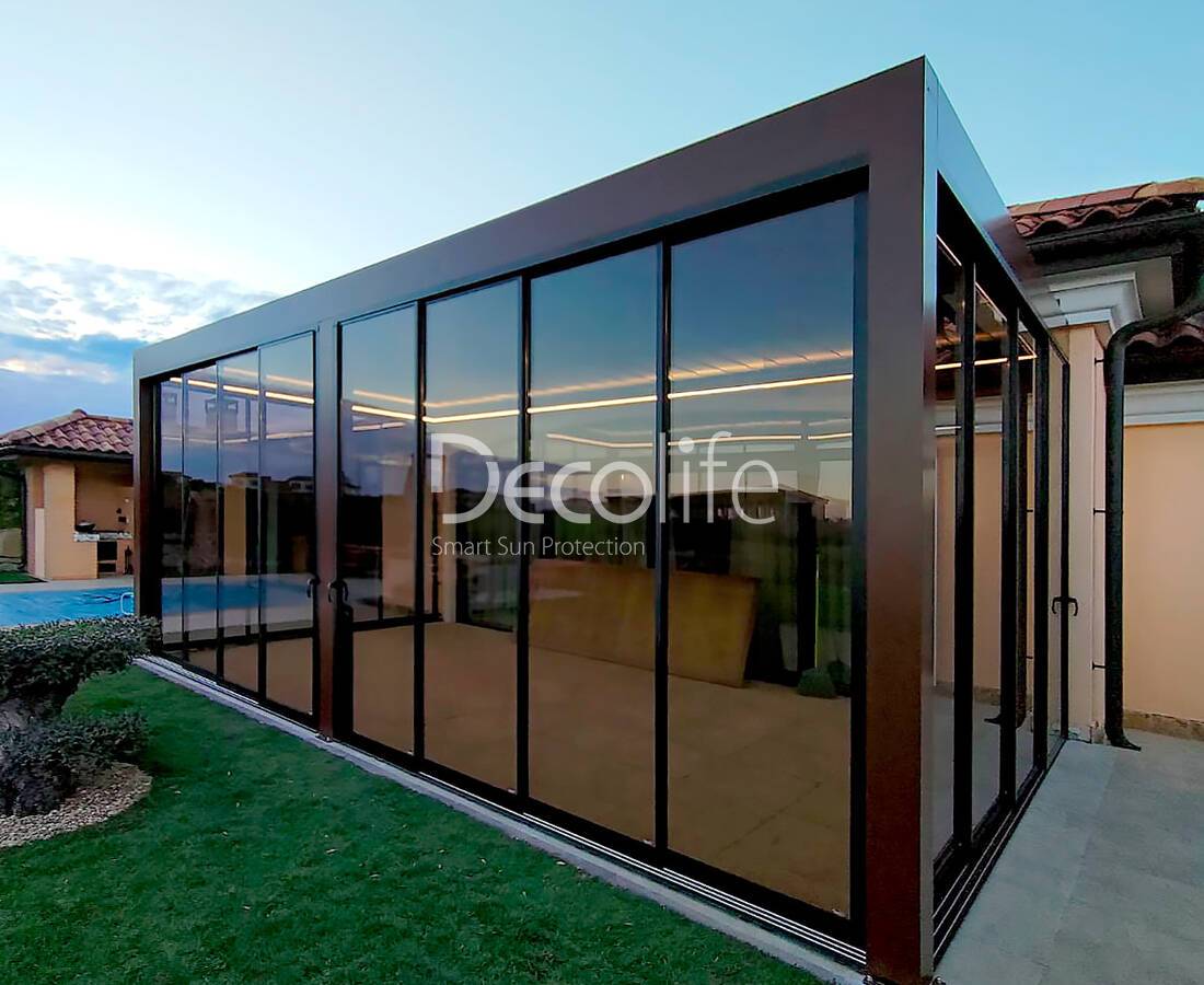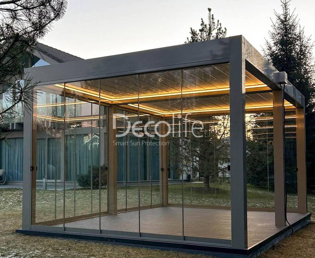 Пергола Decolife B700-25С + Сдвижное рамное остекление S500 -