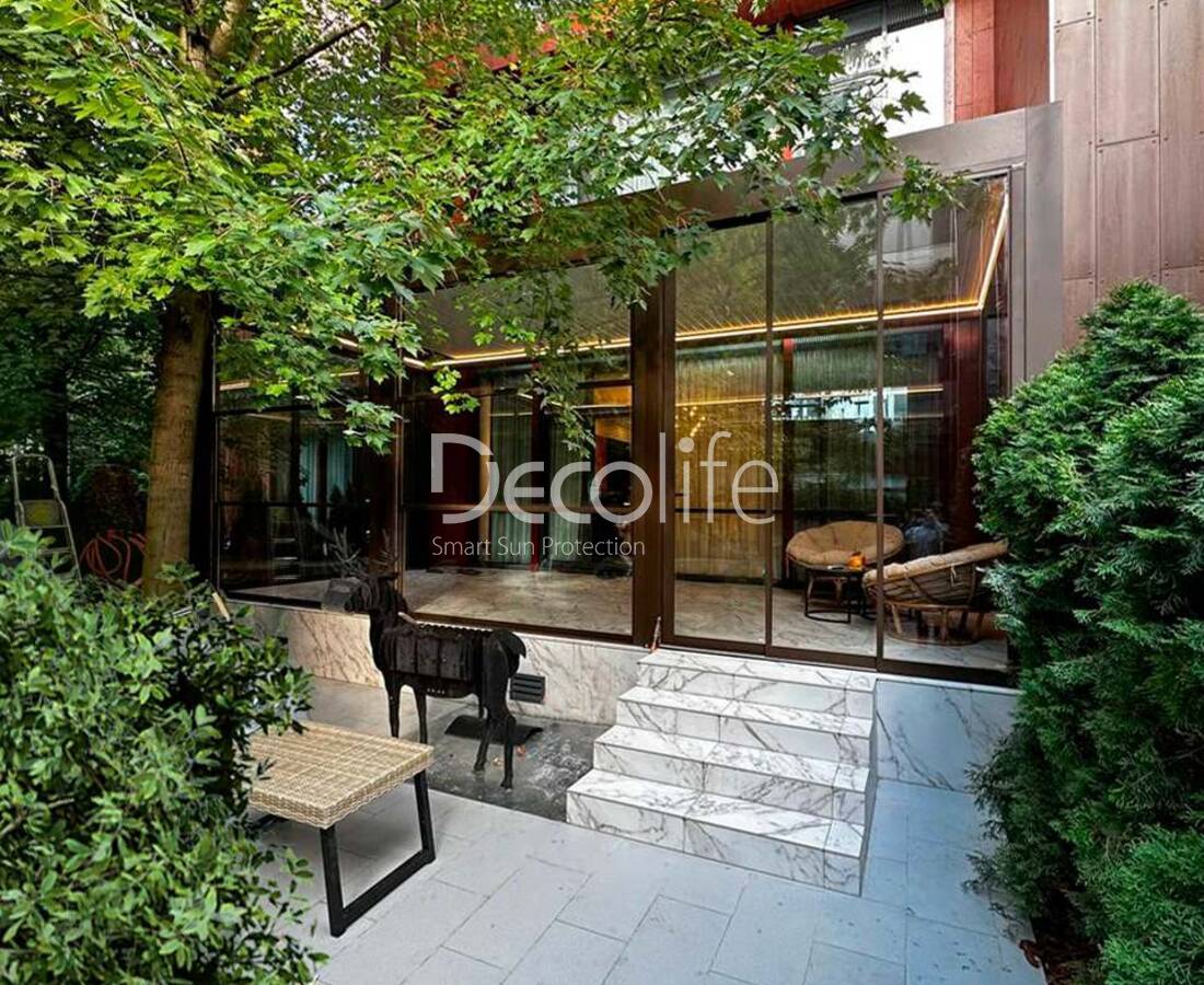 Особые свойства стекла позволяют без проблем удалять любые загрязнения. Системы такого типа стильно и эффектно выглядят, становятся стильным дополнением к интерьеру открытой площадки, элегантно и благородно оформляют и зонируют пространство!